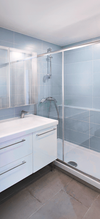 Les clients souhaitaient également une salle de bains modernisée, sans perdre le charme de l’ancien. Ils appréciaient l’aspect vintage de l’ancienne salle de bains, mais désiraient remplacer la baignoire par une douche, plus pratique pour un usage quotidien. Cette transformation a permis de gagner de l’espace et d’apporter une touche de modernité à la pièce d’eau tout en préservant son caractère.