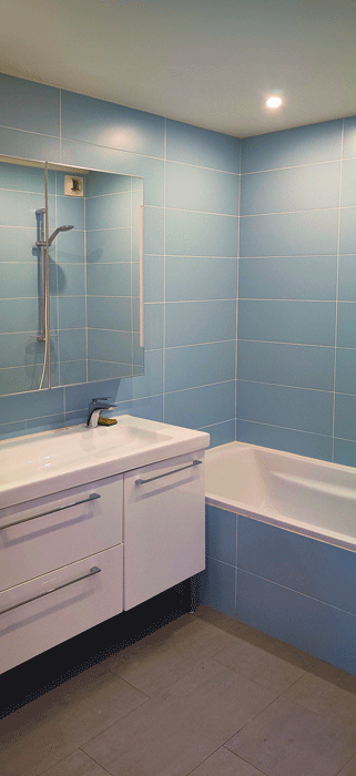 Concernant la salle de bains, Feel Home Renovation a su répondre aux souhaits des clients en retrouvant un carrelage similaire à celui d’origine. Ce choix a permis de conserver une continuité esthétique tout en offrant la modernité d’une douche. Cette attention aux détails a donné lieu à une transformation bluffante, qui allie l’authenticité de l’ancien avec le confort moderne, un des objectifs clés de cette rénovation d’appartement à Saint-Mandé.